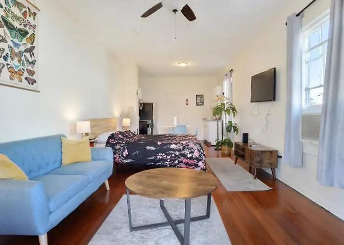 Für einen komfortablen Aufenthalt bietet die Fabulous Franklin Studio Steps From St Claude Ave Annehmlichkeiten wie ein Bügeleisen/Bügelbrett und eine Klimaanlage sowie WLAN und ein Fernsehen mit mehreren Kanälen in den Zimmern. Es gibt einen Haartrockner und Handtücher für zusätzlichen Komfort.